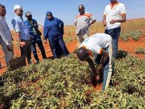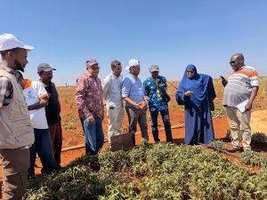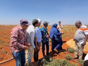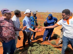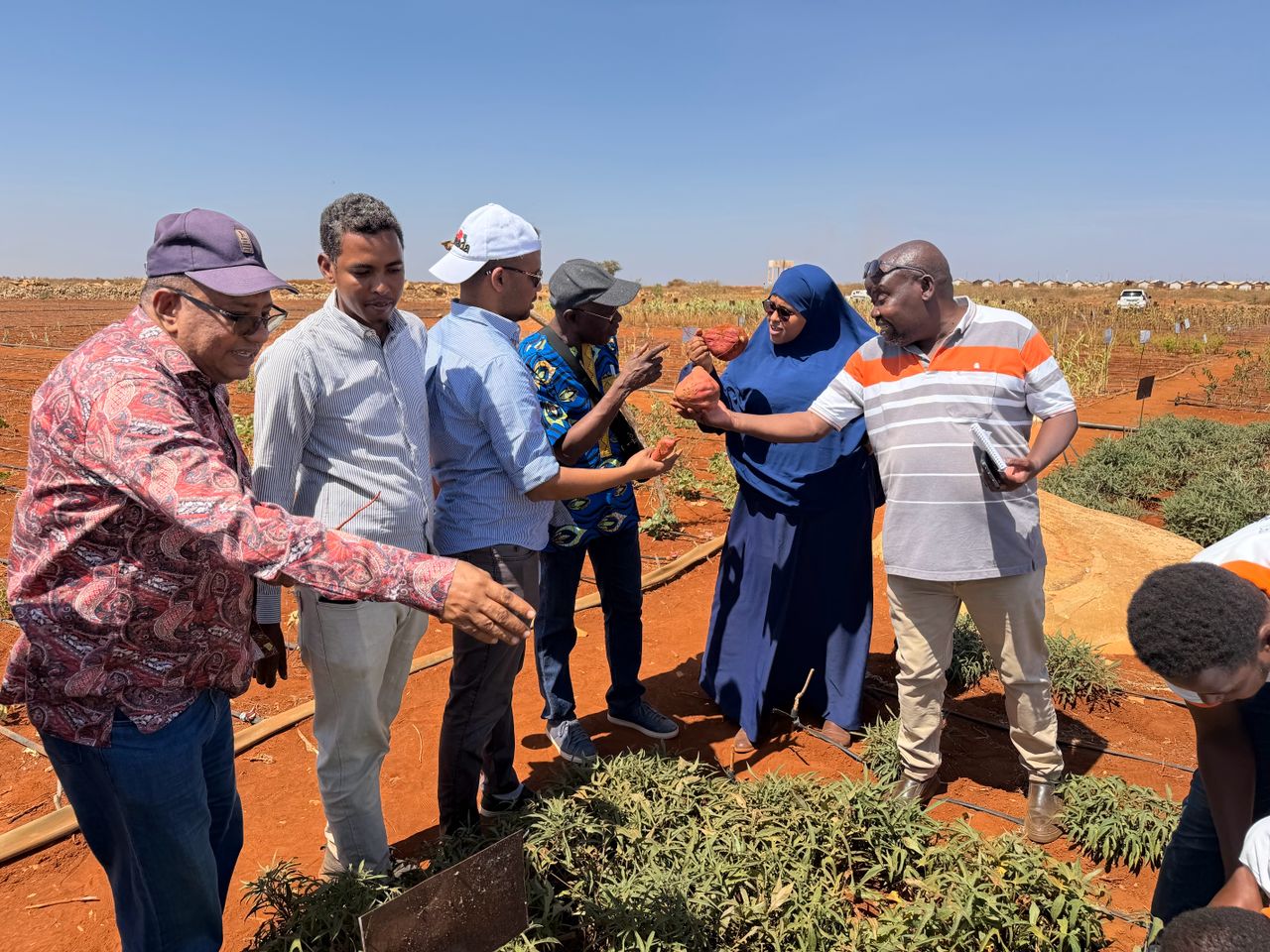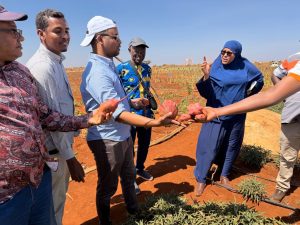 At the AFREC research station, the mission observed a range of crop adaptation experiments covering cereals, vegetables, and legumes. These trials are designed to assess the performance of improved and climate-resilient varieties under Somali harsh environmental conditions. The research plots were well organized and supported by a dedicated technical team actively engaged in agronomic management and systematic data collection using drip irrigation systems.