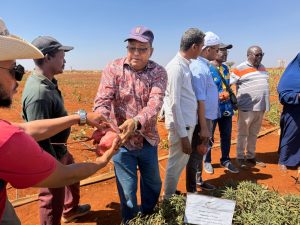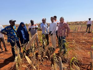 Particular attention was drawn to the strong performance of ICRISAT millet and sorghum varieties, including the Pearl Millet variety Chakty, which demonstrated promising adaptation and vigor under water-stressed conditions. These results highlight the potential of improved germplasm to enhance food security and farmer resilience in drought-prone areas of Somalia. Another crop that stood out during the visit was orange-fleshed sweet potato, which demonstrated impressive adaptability, strong yield potential, and remarkable resilience under water-stressed conditions.